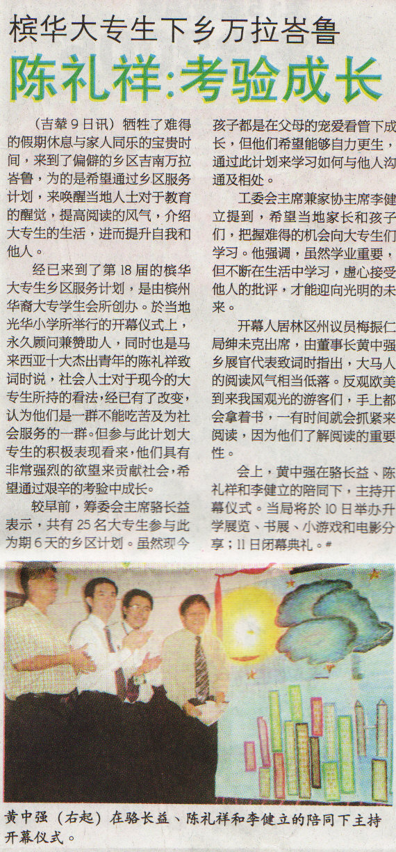槟华大专生下乡万拉峇鲁