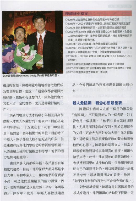 对于启蒙恩师Desmond Lee给予的指导感激不尽